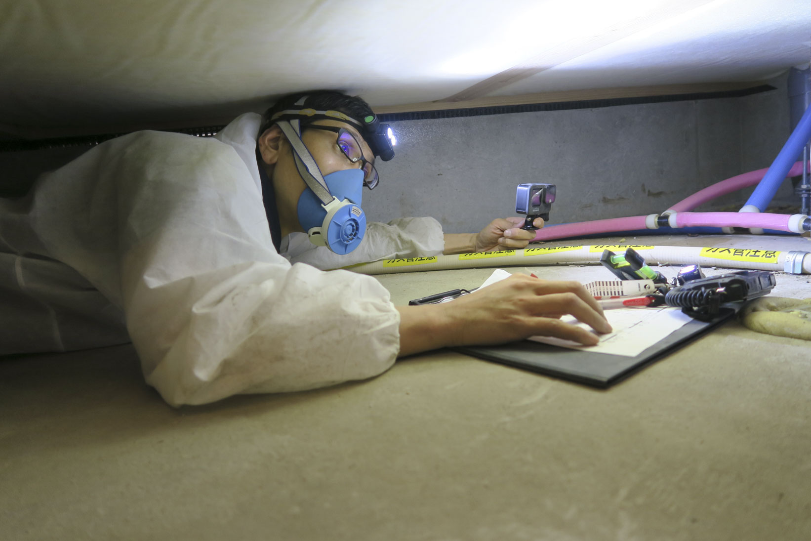 床下検査の状況をリアルタイム映像で確認