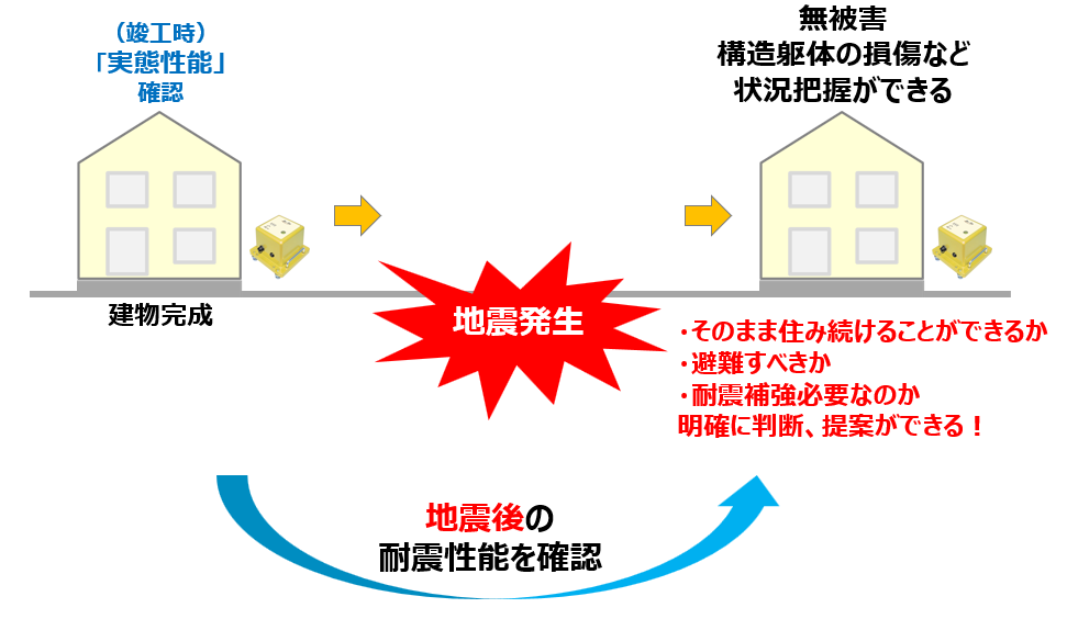 3、耐震補強の前後で計測すれば、耐震性が上がったか確認できる。