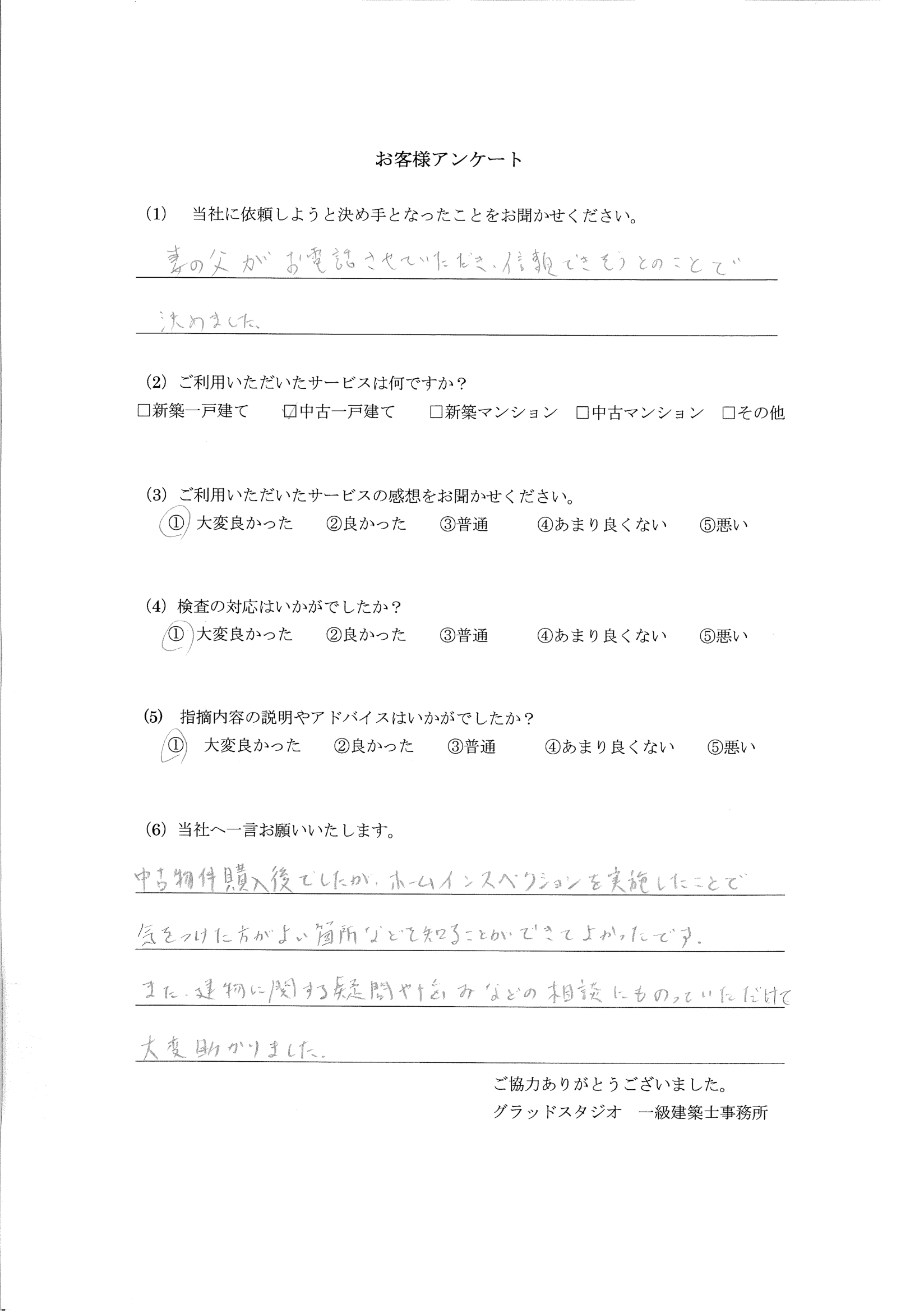 ご依頼のきっかけ:妻の父がお電話させていただき信頼できそうとのことで決めました。